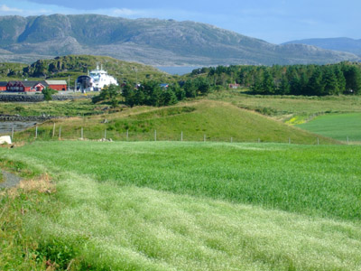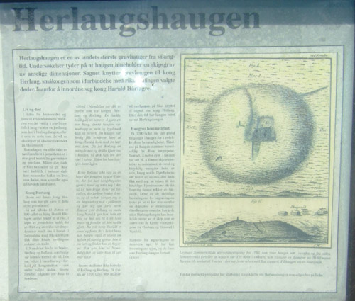 28.05.08 Man sagt, dass sie drei Sommer an dem Hügel gebaut haben. Als König Harald Harfagre (Harald Schönhaar) mit seinem Heer anrückte, nahm Herlaug Essen, Trinken und elf Männer mit sich in den Erdhügel. Er wollte lieber sterben als Untertan sein. |