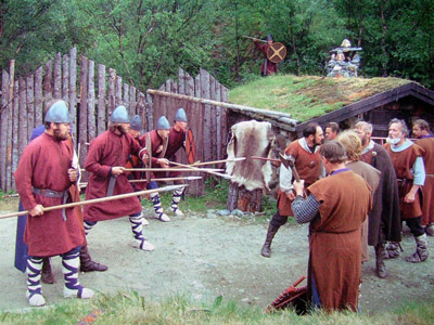 | Das Wikingertheater "König Herlaug" jährlich im Juli, mit bis zu 70 Akteuren. | ![]() |